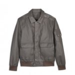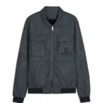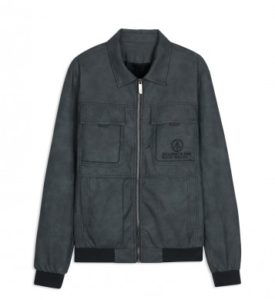 ÁO KHOÁC DA GHI XÁM 2 TÚI HỘP IN CHỮ NGỰC TRÁI