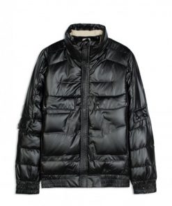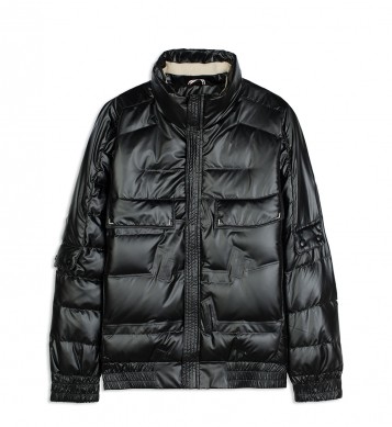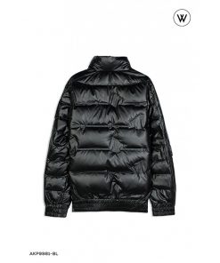 ÁO KHOÁC PHAO ĐEN BÓNG CỔ 3P CHE KHÓA12