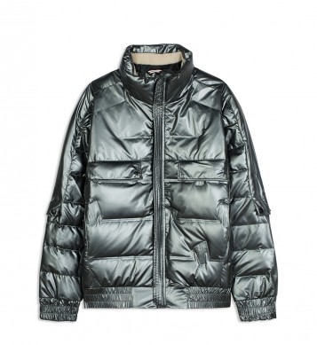 ÁO KHOÁC PHAO BÓNG XÁM CỔ 3P CHE KHÓA